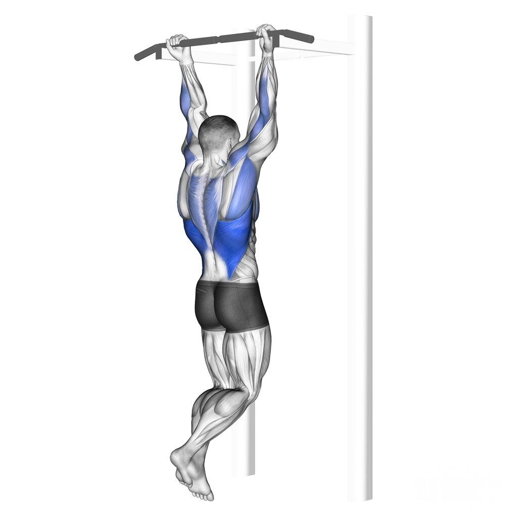 * Breathing out, pull the torso upward until the head is above the bar, keeping the elbows against the side of the body.