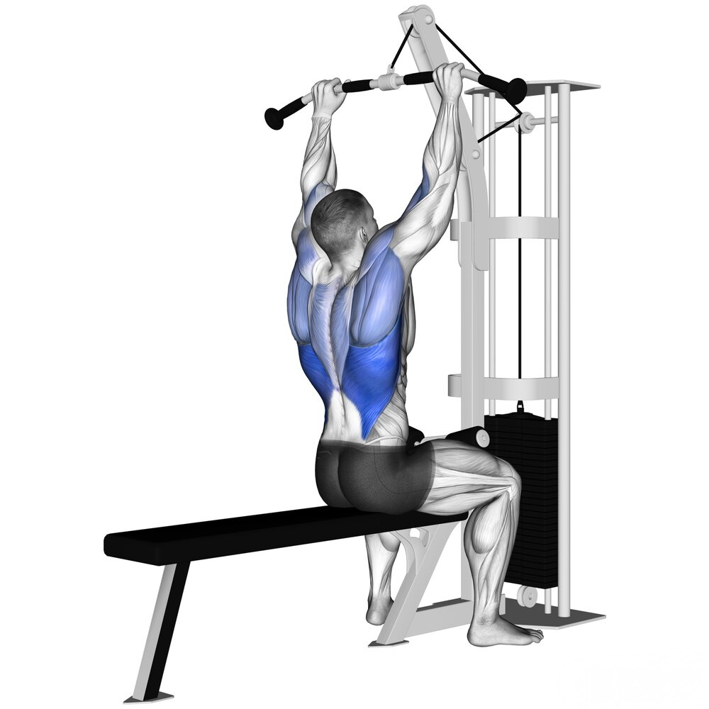 * Sit on the pull down machine with knee pads adjusted to provide support, preventing your body from being pulled out of position