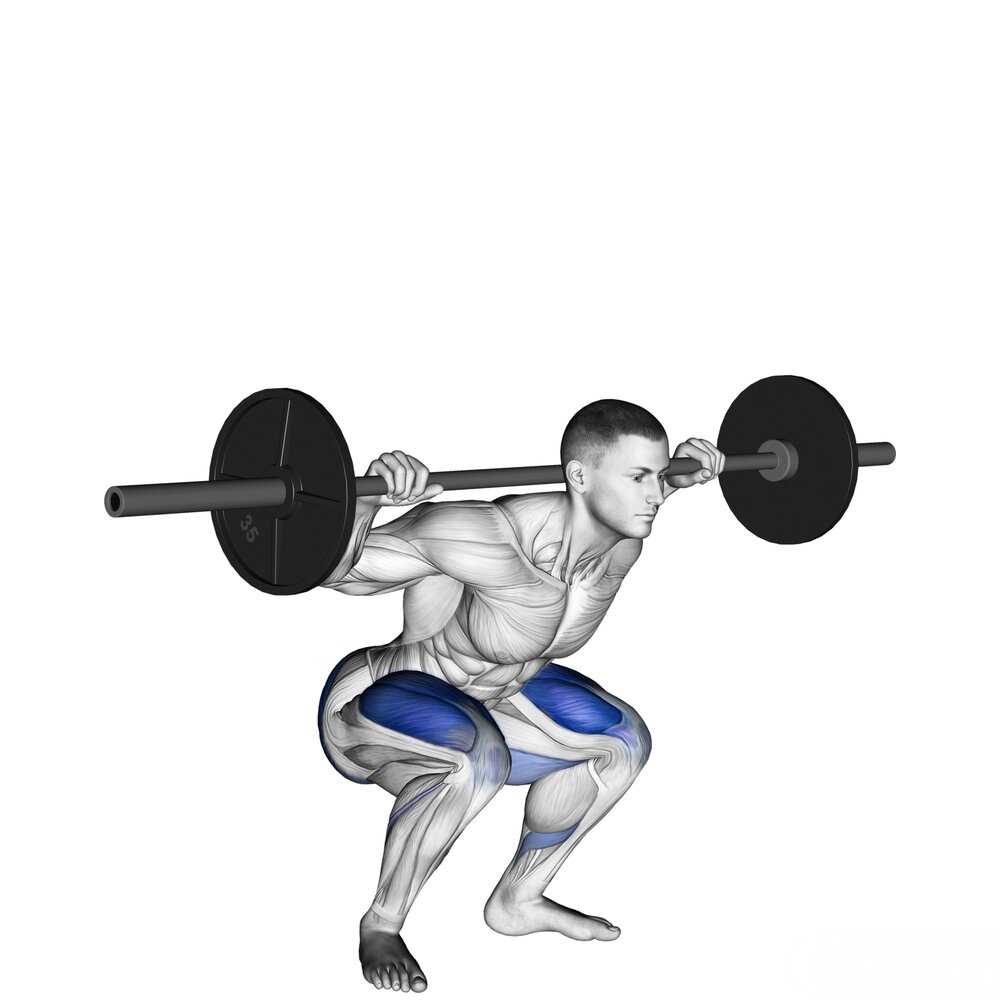 Place the bar between the traps and the upper back, with the hands shoulder width apart