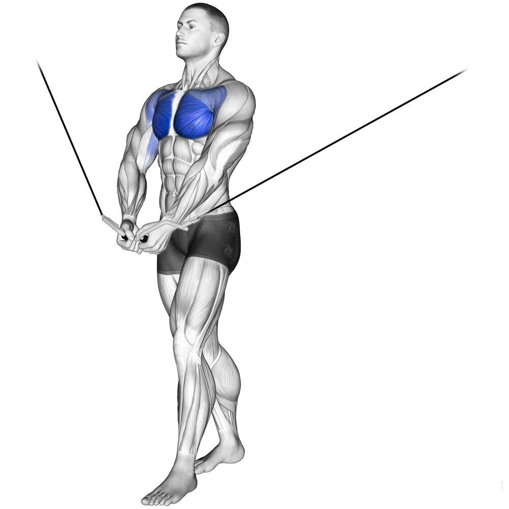 * Bring the handles across the chest in a circular motion, squeezing the chest as the hands meet.