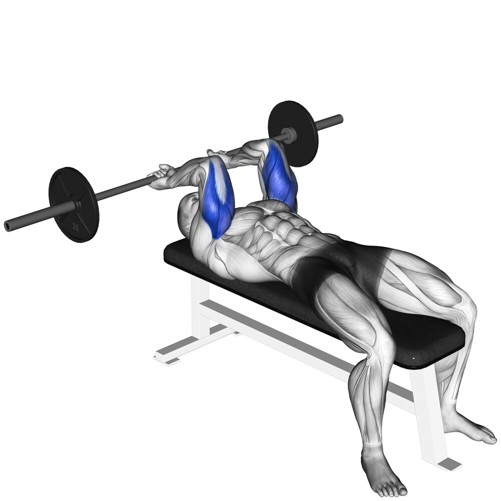 * Lower the bar to your forehead by bending your elbows. Make sure your elbows stay inplace and that you slow your descent as the weight approaches your forehead.