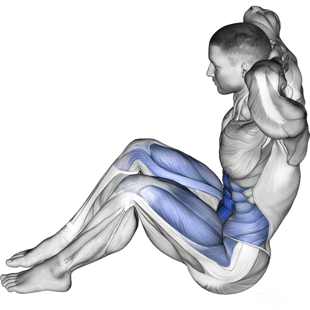 * Contracting the abs, raise the torso until it makesa V with the thighs.